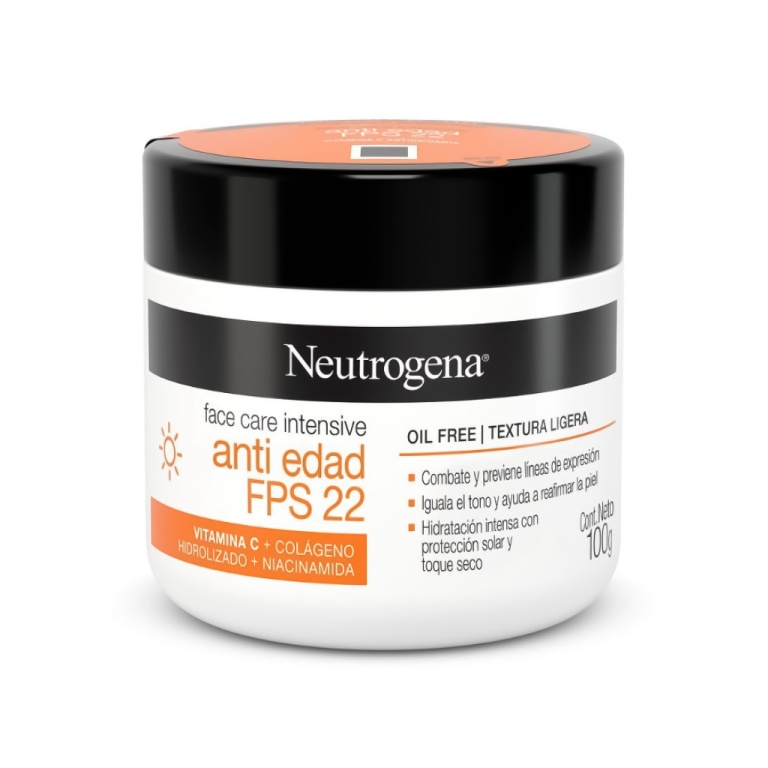 | Anti-idade para todos os tipos de pele. Com textura leve e oil-free, Neutrogena Face Care Intensive Antissinais FPS22 protege, uniformiza e previne linhas finas. |