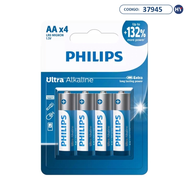 pilha alcalina aa philips ultra alkaline lr6e4b/97 - 4 unidades