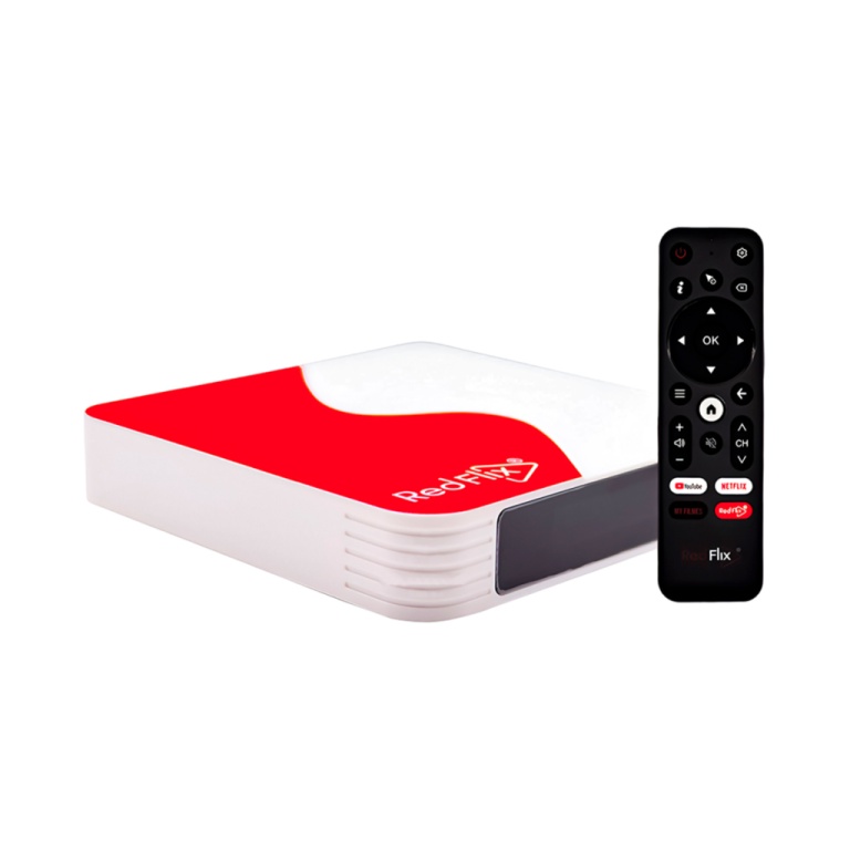 | Aproveite uma experiência única com o receptor FTA Redflix Red 4K Wifi em branco e vermelho. |