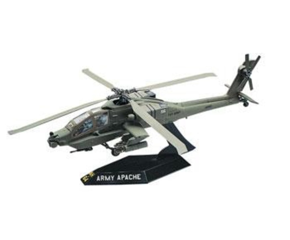 | Este é um kit de modelo plástico de helicóptero 1/72 AH-64 Apache. |