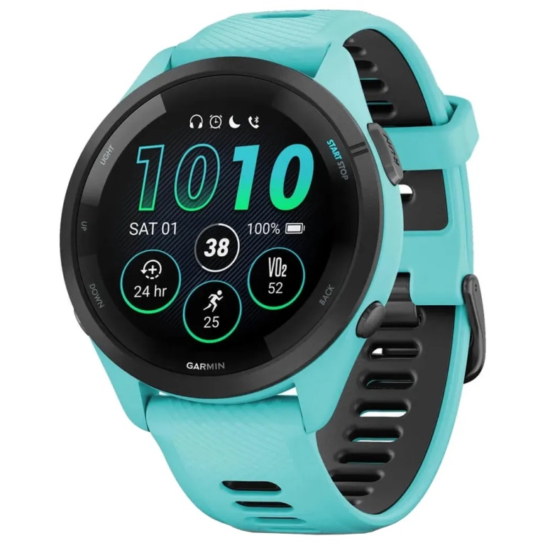 smartwatch garmin forerunner 265 010-02810-02 com tela amoled / 5 atm / 46mm / wi-fi / 8gb - aqua