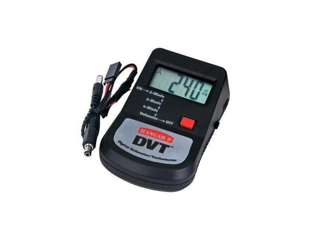| Agora Hangar 9 consolidou esses dois acessórios de campo em uma conveniente unidade compacta Uma grande combinação, novo voltímetro do Hangar 9 digital e tacômetro (TVP ™) combina um voltímetro digital com um built-in de carga para 4 - e pacotes de receptor 5-cell e um pacote de transmissor de 9,6 volts com um tacômetro que lê com precisão em incrementos de 10 rpm para 2 -, 3 - adereços, ou 4 pás. |