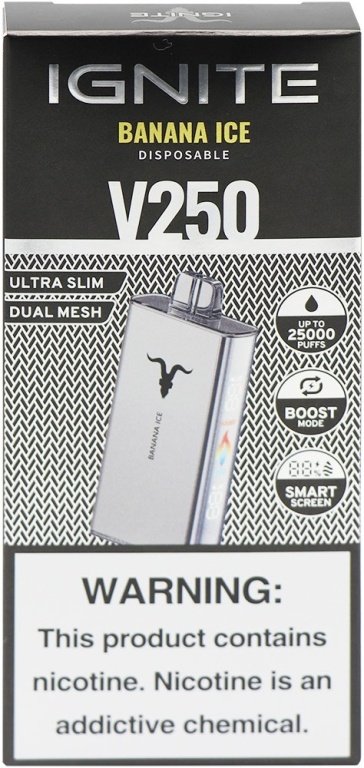 vape descartável ignite v250 banana ice 25000 puffs silver