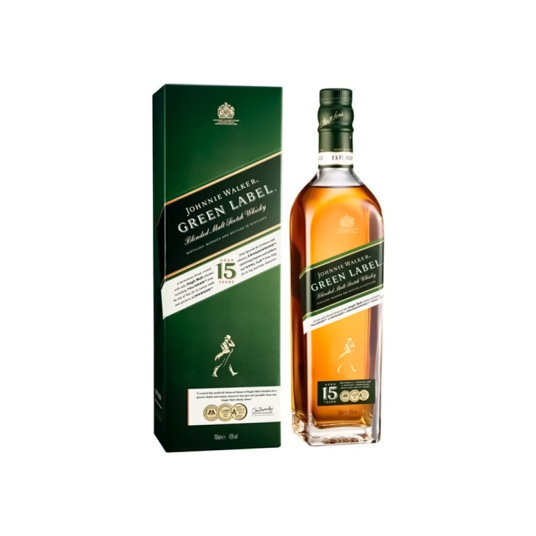 Johnnie walker green label é um whisky escocês blended malt envelhecido por no mínimo 15 anos.