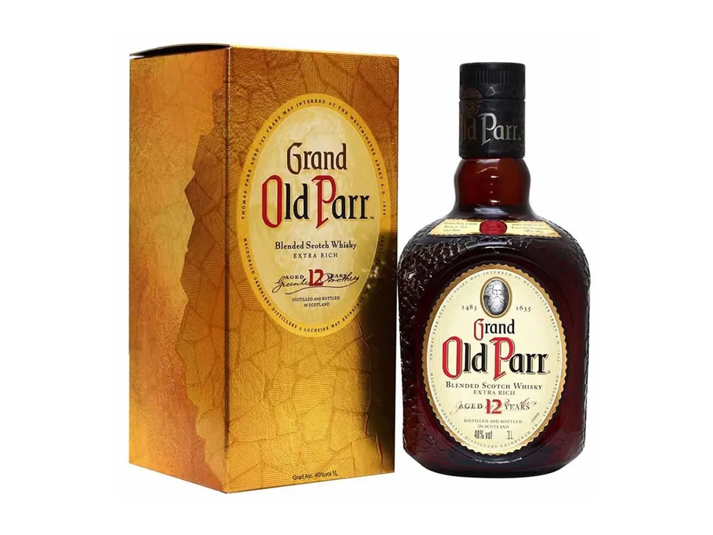Whisky escocês. Nascido em 1483, Thomas Parr viveu 152 anos na Grã-Bretanha. Em 1871, os irmãos James e Samuel Greenles criaram Grand Old Parr, em homenagem ao legendário Thomas Parr. E diz a lenda que o espírito de longevidade deste incrível homem está em cada dose de Old Parr.